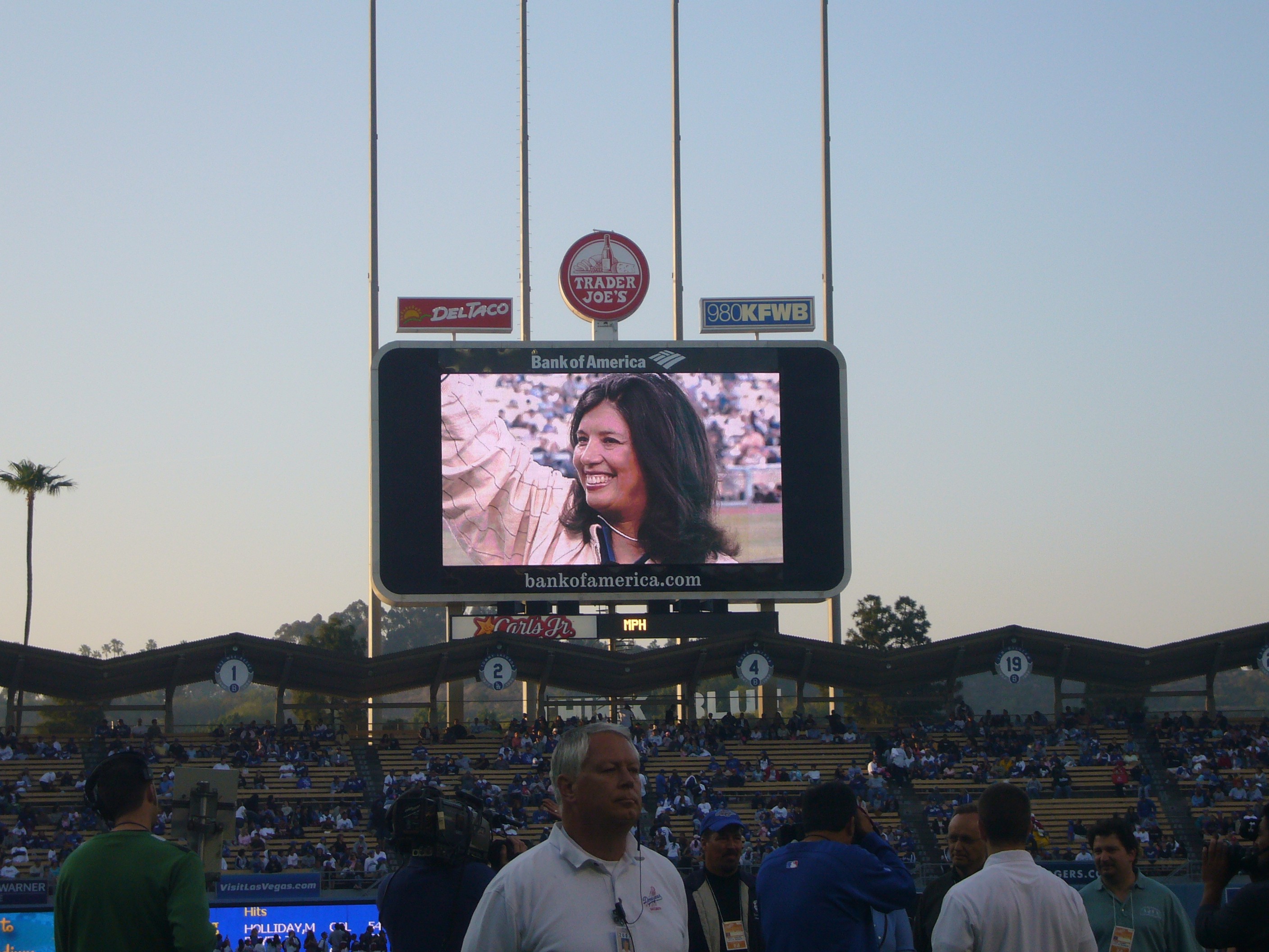 Mayor Marsha Ramos can be seen on the Jumbotron at Burbank Dodger Night event.